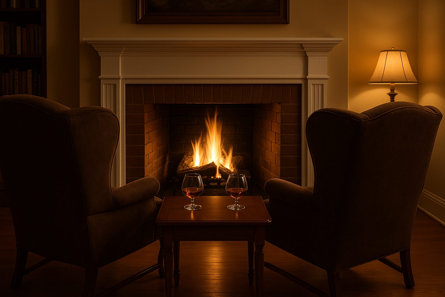 Dessert had been served, the dishes done, dried, and put away. Tristan and I moved into the living room. I lit a fire in the fireplace, and we both sat in cozy chairs, admiring the flames.